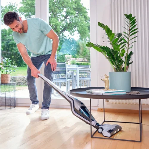 L'aspirateur sans fil Rotaro PowerVac 2en1 permet d’aspirer sans être gêné par un câble. Tous les sols dans la maison deviennent ainsi propres en un tour de main !