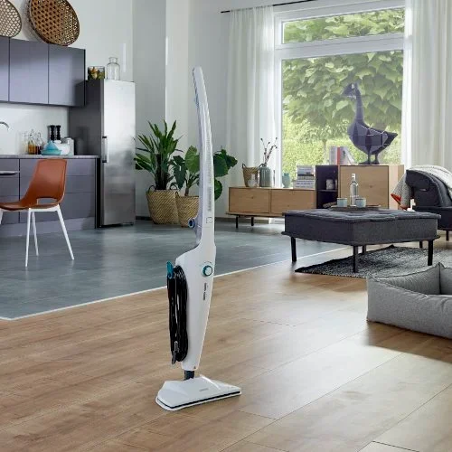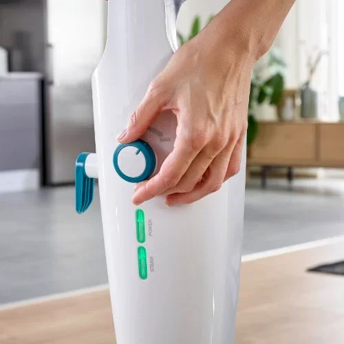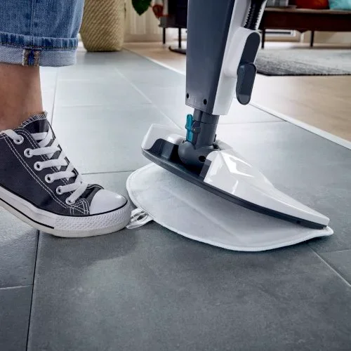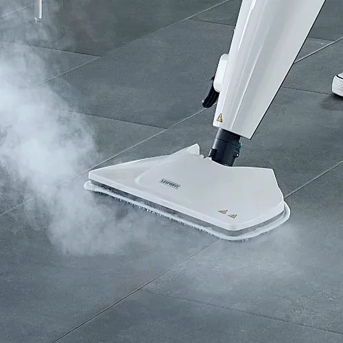 - Le réglage continu de la quantité de vapeur vous permet de définir le niveau d’humidité optimal pour les différents types de sols comme la pierre, le carrelage, le parquet stratifié, le PVC ou les sols vitrifiés