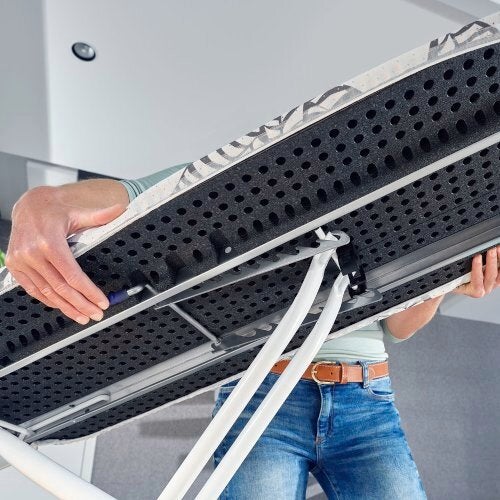 - grâce à la grande surface au sol, la table à repasser est absolument stable