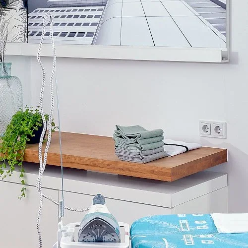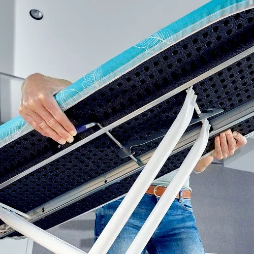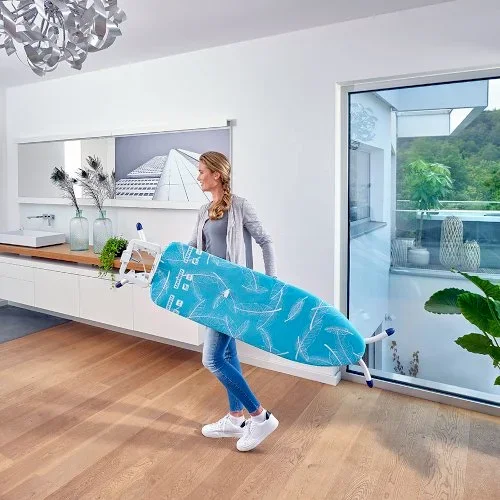 - transport sécurisé de la table à repasser grâce à la sécurité de transport en état plié