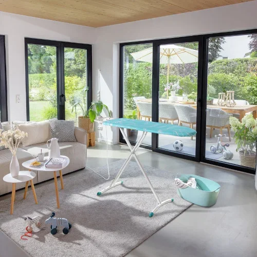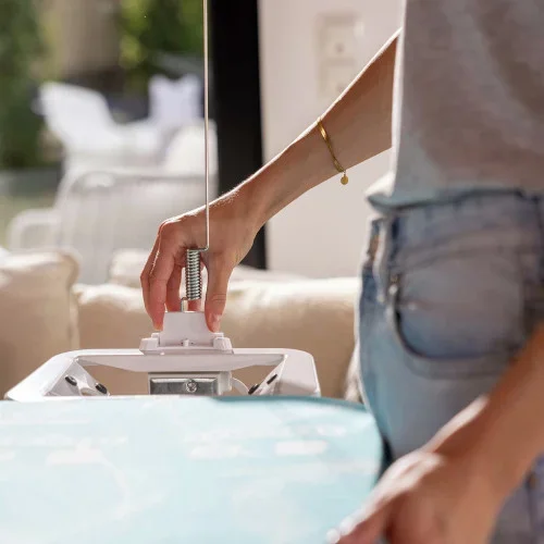 - Rangement facile de la table à repasser grâce à la sécurité transport