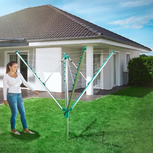 Sécher le linge en extérieur – avec le séchoir parapluie Linomatic 500 Comfort