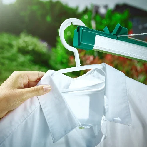 - Ne pas accrocher le linge d'un seul côté et si le vent est fort.