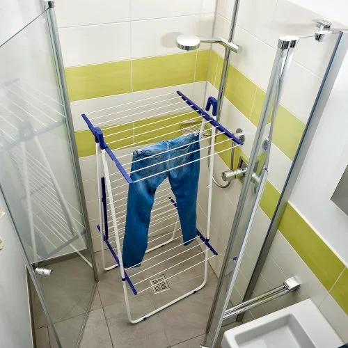 - Middenniveau kan worden opgevouwen om lange stukken wasgoed op te hangen
