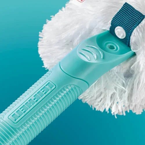 - De praktische bevestiging met drukknoop maakt snel afnemen en aanbrengen van de plumeau aan het handvat mogelijk