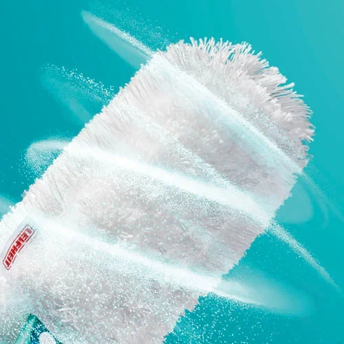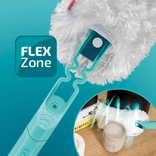 Dankzij het schuine ontwerp van het flexibele blad kunnen alle voorwerpen en planken moeiteloos worden gereinigd. De SUPERDUSTER bereikt zo ook hoekjes en nissen, en maakt stof afnemen simpel en snel.