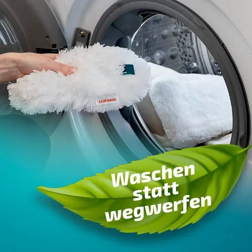 - De plumeau kan tot 50 keer op 40 °C in de machine gewassen worden en heeft een lange levensduur, is milieuvriendelijk en herbruikbaar