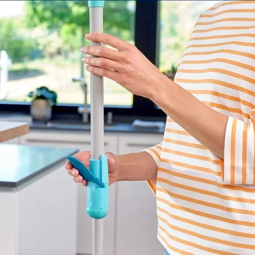 Het 360°-cardangewricht maakt de vloerwisser zeer wendbaar, zodat je heel gemakkelijk zigzag kunt vloerwissen. De steel kan plat neergeklapt worden. Handig, vooral ook voor moeilijk bereikbare plekken zoals onder een kast.