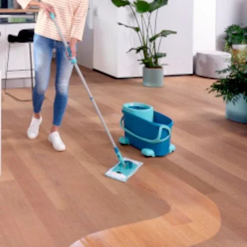 Geen schade door te veel nattigheid, geen krassen – met vloerwisserset CLEAN TWIST M Ergo Mobile. Het rotatiemechanisme centrifugeert de vloerdoek bijzonder goed droog en het vuil wordt als het ware eruit geslingerd. Vloerdoek Super Soft met zijn zachte lusjesstructuur maakt kwetsbare vloeren behoedzaam schoon. *Aanbevolen door de Vereniging van de Duitse parketindustrie (Verband der dt. Parkettindustrie)